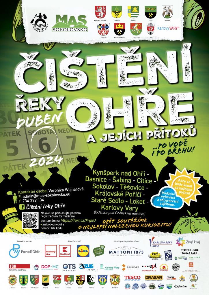 Čištění řeky Ohře v letošním roce proběhne v termínu 5.-7. 4. 2024. Hlavním úklidovým dnem je sobota 6. 4. 2024.