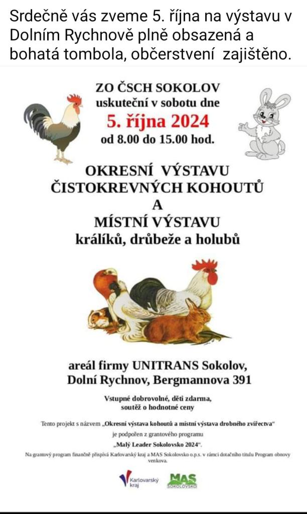 Okresní výstava kohoutů a místní výstava drobného zvířectva.