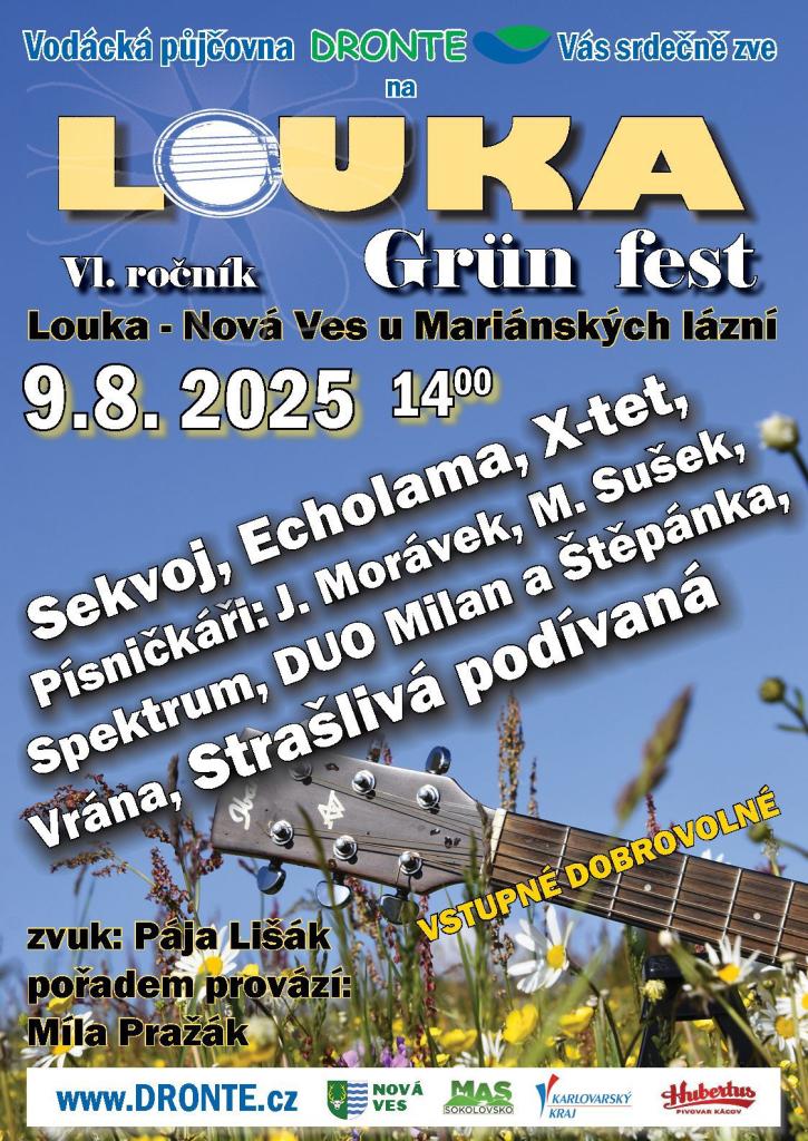Louka Grun Fest je menší, přátelský open‑air festival konaný v osadě Louka u Mariánských Lázní. Tradičně nabídne welcome atmosféru, živou hudbu, občerstvení a nádherné přírodní prostředí.