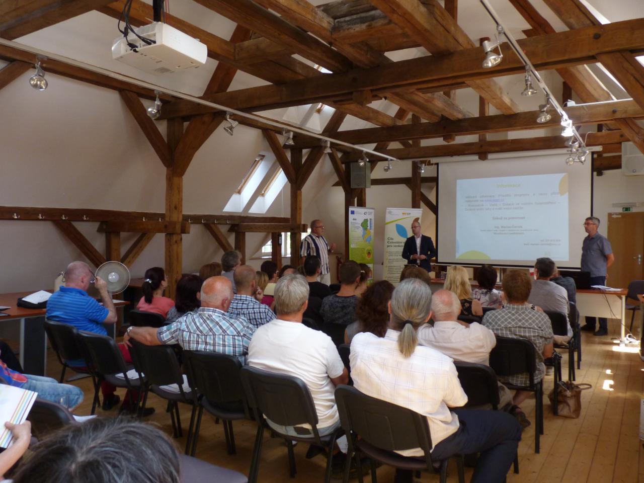 Dále nastoupili se svými prezentacemi pánové Ing. Petr Krása a Ing. Miloš Holub, Ph.D. (Regionální pracoviště Správa CHKO Slavkovský les) zaměřené na fenomén CHKO Slavkovský les a jeho význam pro bilanci vody v krajině, informovali o podpoře drobných opatření z Programu rozvoje venkova a v neposlední řadě se zabývali realizovanými vodními opatřeními na území Karlovarského kraje.